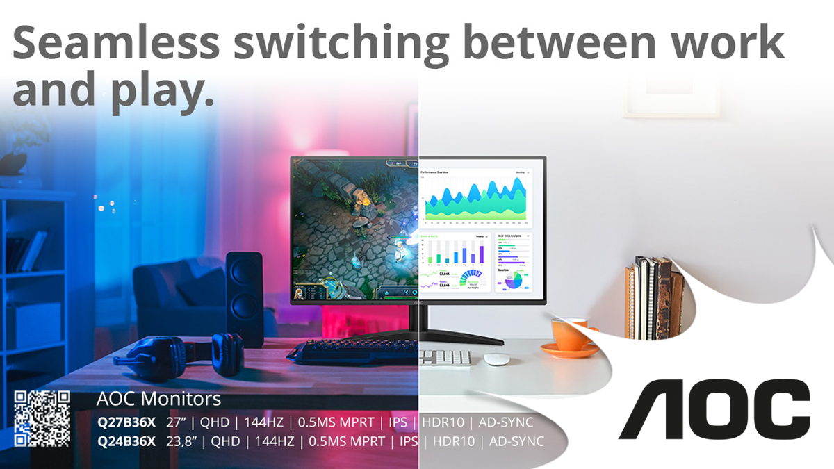 Display specialist AOC expands its versatile B3 series with two new QHD monitors built for users who want more from their display. The 23.8-inch (60.5 cm) Q24B36X and 27-inch (68.6 cm) Q27B36X combine sharp 2560×1440 resolution with a 144 Hz refresh rate and 0.5 ms MPRT response time, delivering smooth visuals whether you’re working through spreadsheets, scrolling through content, or unwinding with a game after hours.