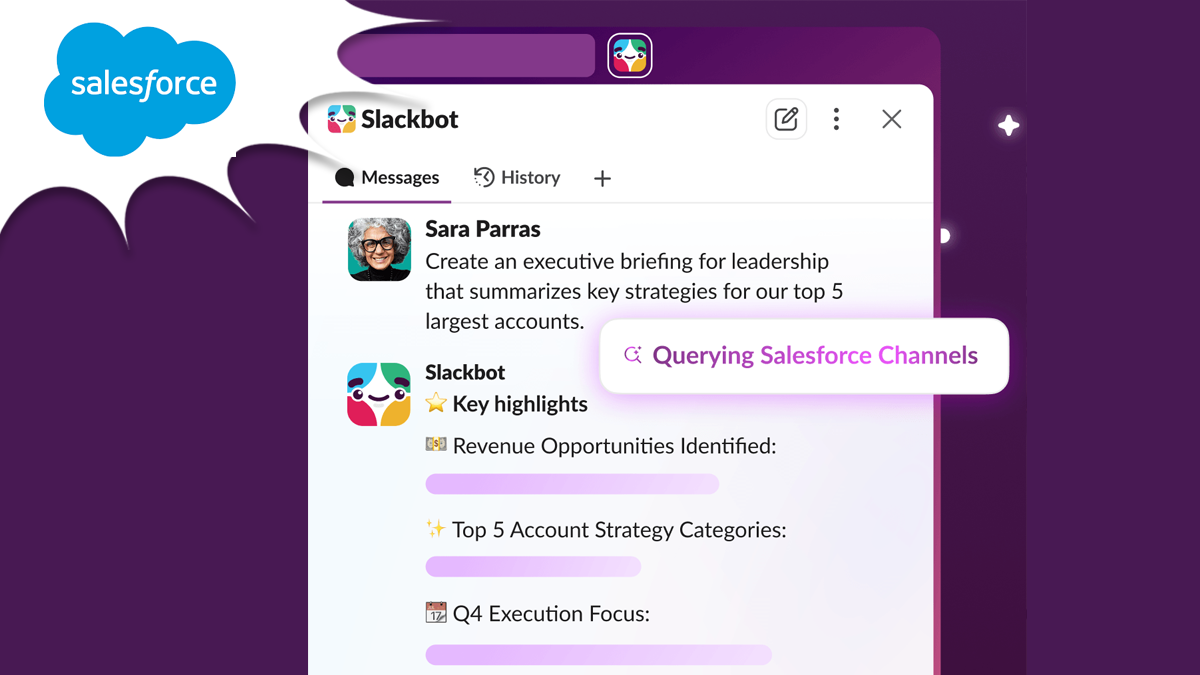 starting over is required. - For enterprise teams on Salesforce, Slackbot can now be the conversational interface for the full
