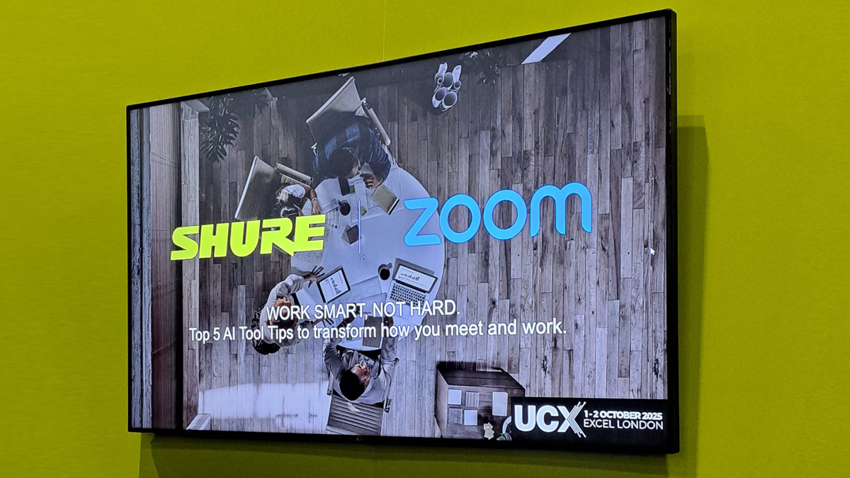 Adam Bootle’s, Shure UK’s UC Sales Manager, and Richard Warner’s, Zoom UK’s Technical Sales Architect, topic at UCX got the crowds in. The AV & Future Workspaces stage area was so packed, there was no standing room left. The topic? “Work smart, not hard: Top 5 AI tool tips to transform how you meet and work.” Bootle and Warner managed to give us 6 top tips.